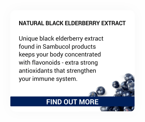 Sambucol® is a unique extract of black elderberry that protects the immune system and effectively stops various kinds of colds and flu. In addition to black elderberry extract, it contains vitamin C, zinc, and many vitamins and minerals that are a perfect combination to fight viruses.